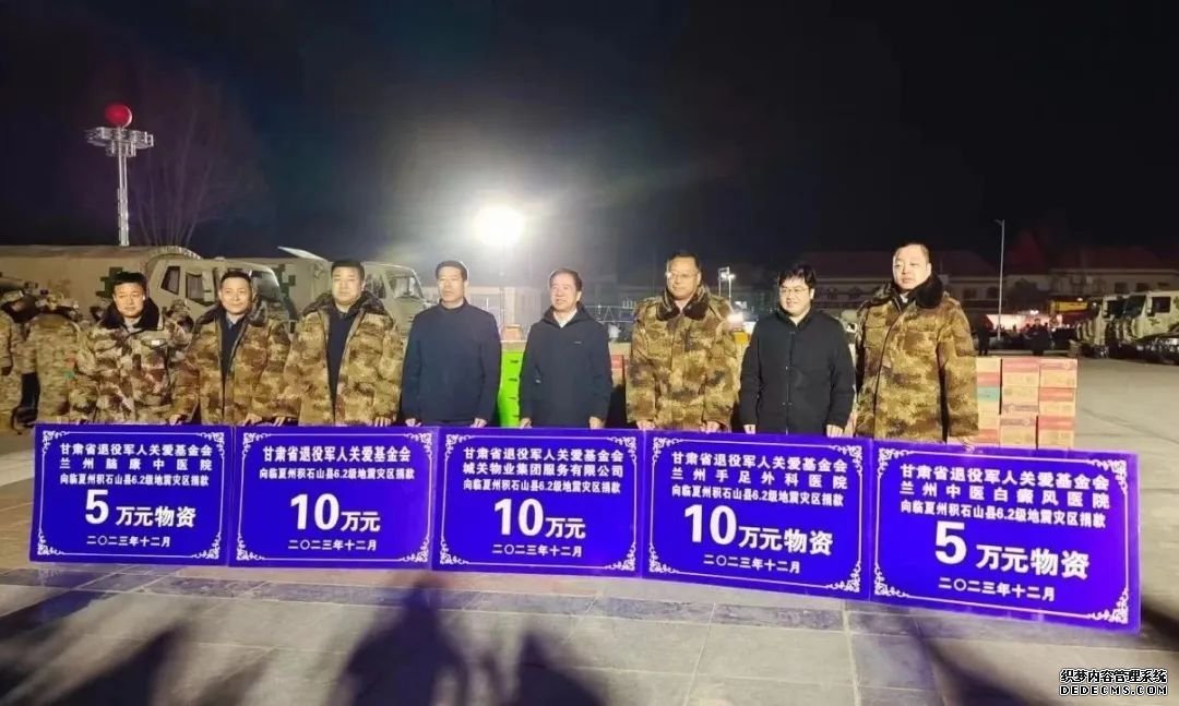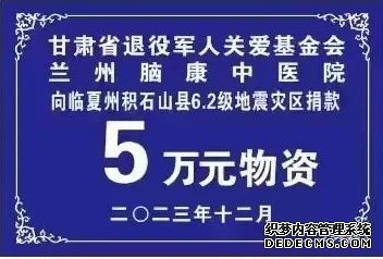 19日上午,甘肃省退役军人关爱基金会联合兰州脑康中医院等4家关爱联盟单位,向灾区捐赠20万元现金、20万元物资(羽绒服、棉大衣、药品等用于救助受灾群众),其中,我院通过甘肃省退役军人关爱基金会向临夏州积石山县6.2级地震灾区捐赠五万元物资(羽绒服、棉大衣、方便面、矿泉水等生活物资装备;手动破拆 、手动压剪、蛇眼探测仪、博士凿岩镐、液压顶撑、扩张钳等地震救援装备以及药品、医用绷带、医用口罩、医用碘伏、消毒剂等医疗救援装备)。