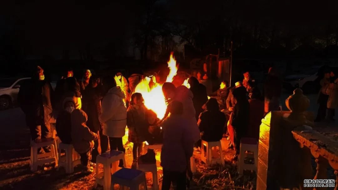 受灾群众在临时应急避难场所烧火取暖,我院医疗救援应急小组开展心理疏导